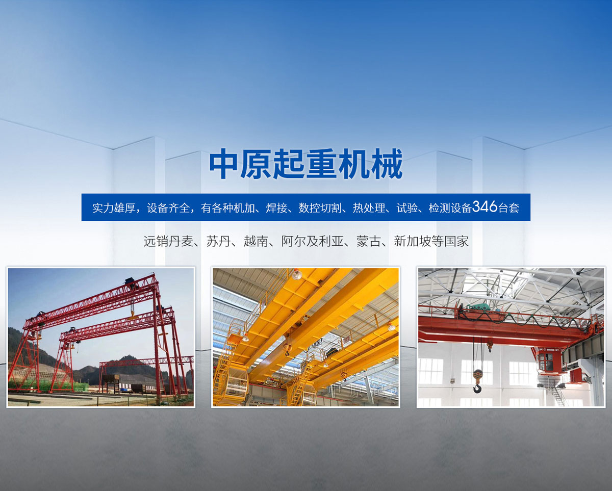 新鄉(xiāng)市中原起重機(jī)械有限公司成立于2000年,地處中原,輻射全國28個(gè)省市自治區(qū),設(shè)外埠經(jīng)銷處、辦事處268個(gè)。產(chǎn)品行銷工礦、建材、化工、冶金、電力、交通、鐵路、油田、港口等各個(gè)行業(yè)。遠(yuǎn)銷丹麥、蘇丹、越南、阿爾及利亞、蒙古、新加坡等國家。  公司實(shí)力雄厚,設(shè)備齊全,有各種機(jī)加、焊接、數(shù)控切割、熱處理、試驗(yàn)、檢測設(shè)備7臺;有機(jī)加工、熱處理、單、雙梁橋門機(jī)生產(chǎn)、檢測、安裝等9個(gè)車間,研究中心、運(yùn)輸公司、安裝維修服務(wù)公司等機(jī)構(gòu),?  主要產(chǎn)品有:LD型1~20噸電動(dòng)單梁起重機(jī)系列產(chǎn)品;5~600噸通用橋式、門式、冶金、上旋轉(zhuǎn)下旋轉(zhuǎn)電磁吊、絕緣、抓斗、防爆起重機(jī)系列產(chǎn)品;LH3~100噸葫蘆雙梁系列產(chǎn)品;MH5~32噸葫蘆門式系列產(chǎn)品;0.5~40噸CD1、MD1鋼絲繩電葫蘆系列產(chǎn)品;HS1型0.5~20噸手動(dòng)葫蘆系列產(chǎn)品;0.5~10噸環(huán)鏈電動(dòng)葫蘆系列;0.5~40噸彎道電動(dòng)葫蘆系列產(chǎn)品;裝卸橋、造船門機(jī)、架橋機(jī)、鑄造吊和水電大噸位起重機(jī)系列產(chǎn)品。  公司建立了強(qiáng)有力的質(zhì)量保證體系和生產(chǎn)過程的質(zhì)量控制系統(tǒng),嚴(yán)格執(zhí)行國家設(shè)計(jì)、生產(chǎn)標(biāo)準(zhǔn),有嚴(yán)格的生產(chǎn)工藝過程和標(biāo)準(zhǔn),嚴(yán)格的檢驗(yàn)、檢測標(biāo)準(zhǔn)和手段。